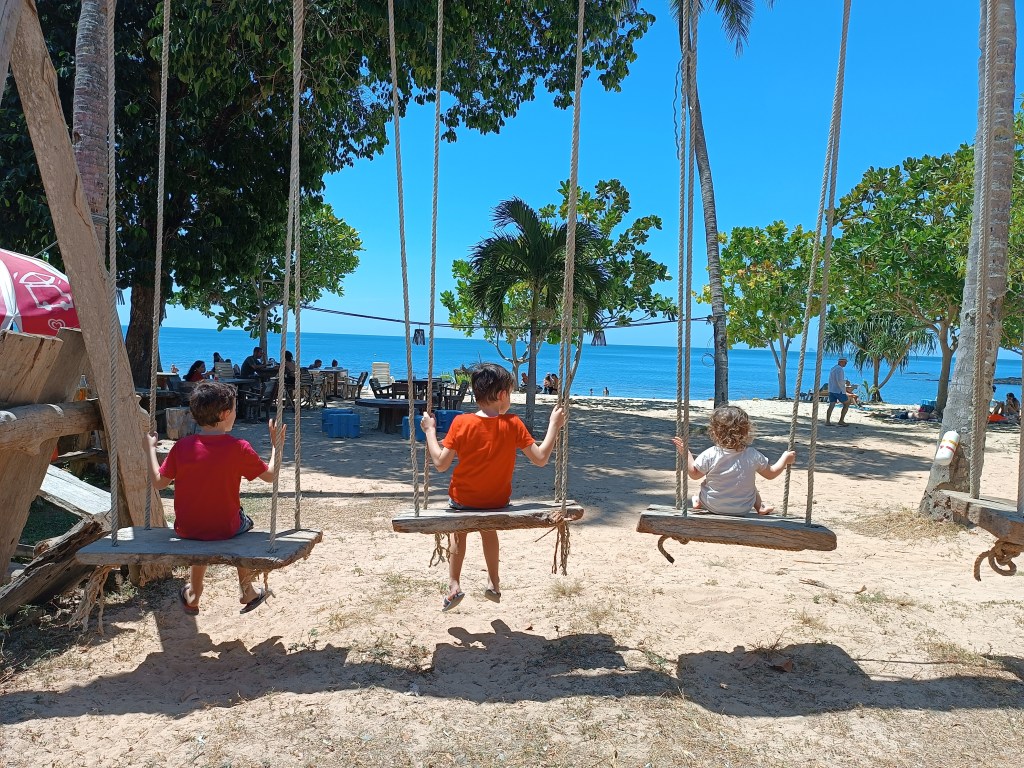 Koh Lanta a tenu ses promesses sur ses paysages et la diversité des lieux à visiter : on a vu de belles plages, on a baladé dans la jungle, on a visité des jolis villages, on a trouvé des coins sauvages, on a assisté à de somptueux couchers de soleil… Notre vie ultra minimaliste dans notre hutte en bambou était vraiment une belle expérience à vivre en famille et les propriétaires étaient très gentils. Ils ne parlaient pas bien l’anglais, donc la communication était limitée, mais ils étaient en adoration devant les enfants, toujours à leur parler gentiment, leur donner des friandises. Surtout notre pépette qui chante toute la journée, et qu’ils trouvaient trop « cute » avec ses « blond curly hair ».