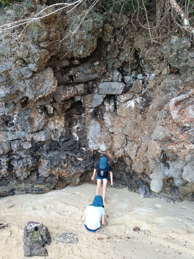 Pour notre dernier arrêt, cap sur Hong Island (enfin !). On a 1h30 pour profiter des lieux. Au programme : baignade, jeux dans le sable, monter au point de vue à 360°, petite balade dans la jungle. Les enfants veulent se baigner et jouer, forcément. Alors on monte au point de vue et faire la petite balade, chacun à tour de rôle. Après un petit effort de 400 marches et une tong qui a lâché dans les 20 premières marches, la récompense est à la hauteur. La vue sur toute la baie de Phang Nga est incroyable. Et aucune photo ne lui rend hommage. Ensuite, la petite balade dans la jungle, sur un sentier aménagé de même pas 1km. Elle longe les parois rocheuses, elle est à l’ombre, c’est un moment agréable. L’heure est venue d’embarquer et de rentrer sur le continent. Nous sommes ravis d’avoir assisté à des paysages aussi splendides. Et nous avons passé une bonne journée. Mais une seule, c’est suffisant pour nous.