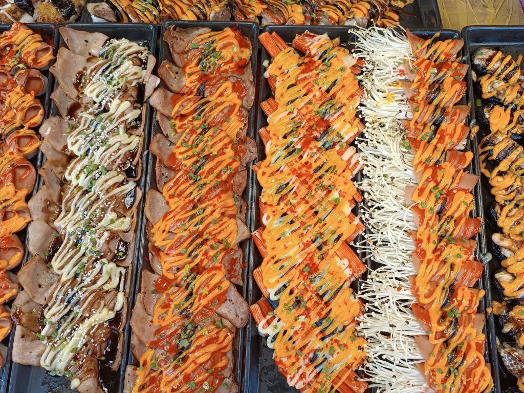 La journée est déjà bien entamée avec le transfert, donc on décide d’aller faire un tour dans le centre de Krabi et trouver un endroit sympa pour manger. On longe à pied les rives du Pak Nam et on se renseigne sur les excursions pour visiter une île. Il y a tant à faire autour de Krabi, mais quasiment tout est sous forme de tour organisé : îles Phi Phi, circuit des 4 îles, circuit des 7 îles, la piscine d’Emeraude, Hong Island, les sources d’eau chaudes, randonnée dans la jungle, quad, rafting… Ce n’est pas notre manière préférée de découvrir un pays, cependant, ici c’est la seule manière (ou affréter un bateau privé, qui au final reviendra au même vu l’affluence sur les lieux). Impossible toutefois, de quitter le sud de la Thaïlande sans vivre l’expérience de l’île paradisiaque. On choisit de visiter Hong Island, dont le programme est plus léger que les autres excursions, et qui, selon la vendeuse, était une des moins prisées des touristes. Les voyageurs rencontrés sur la route sont unanimes, Koh Phi Phi est certes magnifique, mais les bateaux arrivent par dizaines, il faut faire la queue le long d’un sentier pour faire une photo, rester sur la plage un temps très limité et chronométré, et il est strictement interdit de se baigner (seulement jusqu’aux chevilles) sous peine de se faire siffler par les gardes voire même expulser. Même si c’est un incontournable de la région, nous avons décidé de faire l’impasse. On réserve donc, une excursion à Hong Island pour le lendemain matin. Team dernière minute comme d’habitude. Ensuite, on tombe sur un night market très mignon et agréable, et on décide de manger sur place.