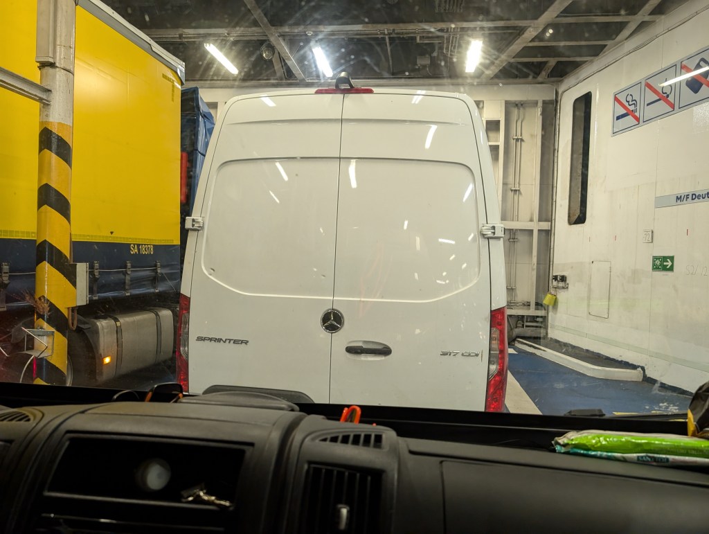 Nous retenons donc que si à première vue, prendre le ferry peut sembler plus onéreux, selon le trajet envisagé ce n’est pas forcément le cas ! En ayant enlevé les vélos à l’arrière du fourgon deux jours plus tôt, nous avons pu bénéficier du tarif des véhicules de moins de 6 mètres, soit environ une centaine d’euros la traversée, avec un horaire flexible (mais jour fixe).