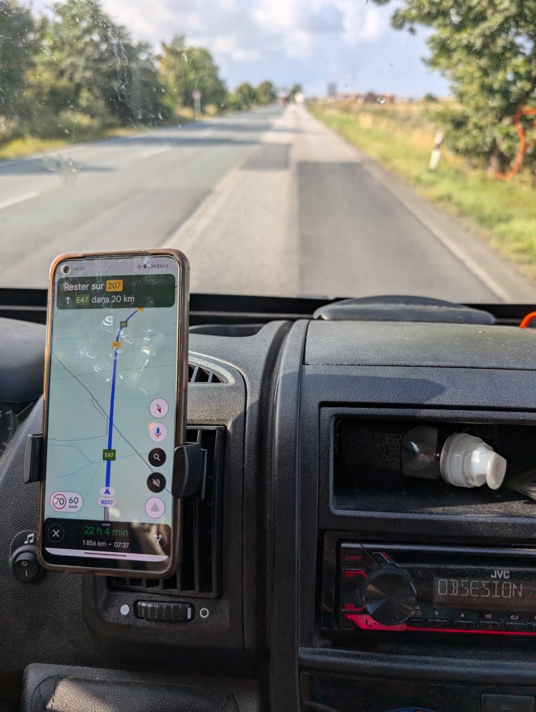 Nous profitons de ces derniers instants et nous rechargeons les batteries pendant les 45 minutes de trajet, en prenant un bain de soleil à la fraîcheur l’aube et en étant bercés par les vagues, car un trajet de 23h de voiture nous attend pour traverser toute l’Allemagne, puis toute la France afin de retrouver nos proches et le confort notre petite maison dans le sud de la France !