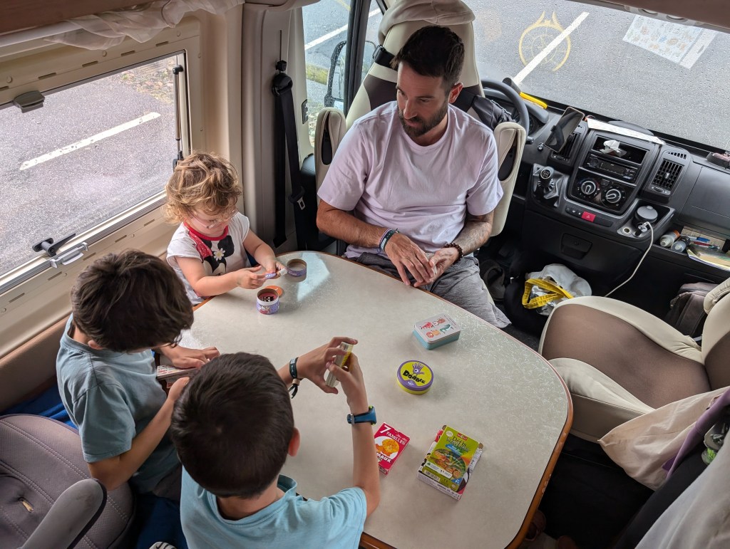 Enfin, les bouteilles de gaz. Ces fichues bouteilles de gaz qui ne sont pas compatibles avec notre système de tuyauterie français. Il existe des adaptateurs, dont nous ferons l’investissement la prochaine fois. Vers la fin du séjour, la jauge du gaz baisse dangereusement. Nous avions deux bouteilles, mais la première avait rendu l’âme à peine la frontière allemande franchie, sinon c’est trop facile. En Allemagne, les bouteilles ne sont pas compatibles non plus. Nous fonctionnions donc sur une seule bouteille, à priori pas complète… Mais de combien, nous n’en avions aucune idée car le capteur ne fonctionne plus. Note à nous-mêmes : réparer le capteur. Donc, environ une semaine avant la fin du voyage, la deuxième bouteille rend son dernier souffle… Continuer sans gaz signifie : plus d’eau chaude et plus de chauffage (ouf en été nous n’en avions pas l’utilité), mais surtout, plus de plaque de cuisson ni de réfrigérateur. Ces deux derniers points étant nettement plus embêtant dans l’organisation. Au bout de quelques jours de thon-maïs, pain de mie, compote, nous n’étions pas mécontents de rentrer chez nous pour retrouver une vraie cuisine toute équipée et de bon aliments locaux et frais !