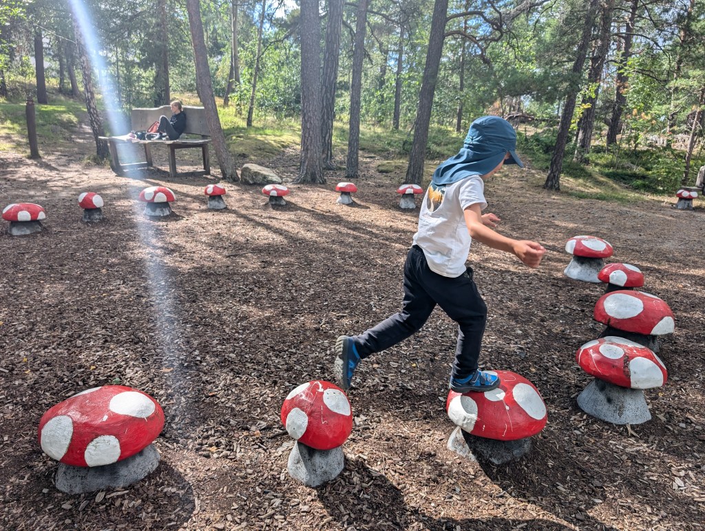 Nous nous répétons, mais quel bonheur de voyager avec de jeunes enfants dans les pays scandinaves ! Il y a beaucoup de respect et de bienveillance envers ces derniers. Les infrastructures de jeux ou sportives sont nombreuses et adaptées aux familles. De même dans les restaurants, toilettes publiques, centres commerciaux… Ainsi quel que soit l’âge, quel que soit le lieu, quel que soit le nombre d’enfants, ils ne sont pas seulement tolérés mais intégrés et appréciés. Ils passent leurs journées en extérieur et profitent des bienfaits de la nature et du plein air, quelle que soit la saison et la météo. Si on devait retenir une leçon de nos voisins nordiques : il n’y a pas de mauvais temps, que des mauvais vêtements ! Et, coïncidence ou pas, c’est le peuple le plus heureux du monde paraît-il…