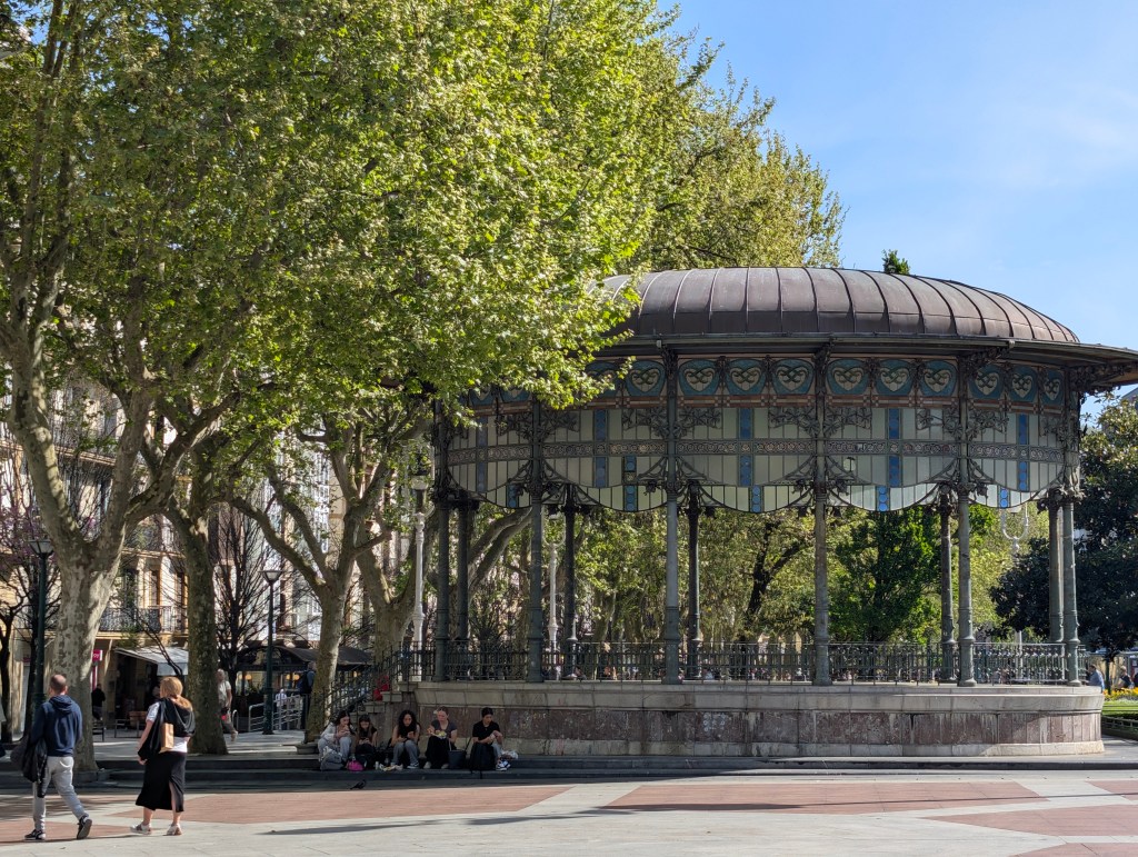Après la visite de Bilbao, plus de deux heures de route nous attendent pour rejoindre la belle San Sebastian. Nous décidons de ne pas emprunter l’autoroute, pour profiter encore un peu du décor, car la fin du séjour approche. Le temps de trajet double, mais on ne veut rien rater. Une fois de plus, la mission « garer le fourgon » à San Sebastian relève de l’exploit. Pour éviter les déconvenues que nous avons connues à Bilbao, nous ne cherchons même pas à approcher de la ville. Nous choisissons une petite ville sur la ligne de train (Intxaurrondo). Nous nous garons sur une place gratuite, en face un parc de jeux et à trois minutes à pied de la gare. Les enfants sont les plus heureux de prendre le train, et nous arrivons dans le centre de San Sebastian en vingt minutes.